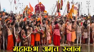 मकर संक्रांति पर महानिर्वाणी अखाड़े के संतों ने किया अमृत स्नान- महाकुंभ मेला