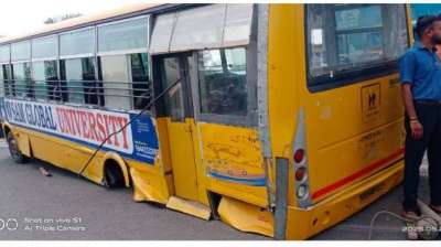 सेम ग्लोबल यूनिवर्सिटी के बस हादसे में कई छात्र घायल हुए , NSUI ने की संचालक पर कार्यवाही की मांग