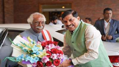 भोपाल : मुख्यमंत्री डॉ. मोहन यादव ने हरियाणा के राज्यपाल बंडारू दत्तात्रेय का मुख्यमंत्री निवास स्थित समत्व भवन में पुष्प-गुच्छ भेंट कर स्वागत किया और प्रतीक चिन्ह के रूप में...