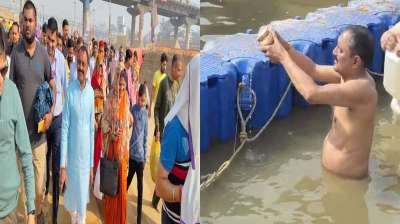 बिना वीआईपी प्रोटोकॉल के मप्र सरकार के मंत्री राकेश शुक्ला ने सपरिवार लगाई महाकुंभ में डुबकी.....