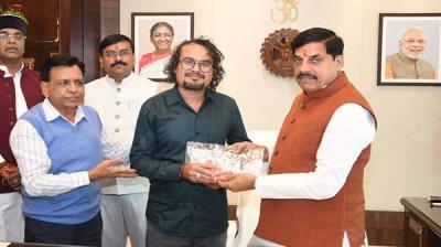 मुख्यमंत्री डॉ. यादव को नीमच के राहुल लोहार ने कीं दुर्लभ कलाकृतियां भेंट