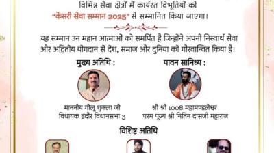 इंदौर। समाज सेवा और राष्ट्र सेवा के विभिन्न क्षेत्रों में उल्लेखनीय योगदान देने वाली 21 प्रतिभाशाली हस्तियों को “केसरी सेवा सम्मान 2025” से अलंकृत किया जाएगा। यह भव्य समारोह 18...