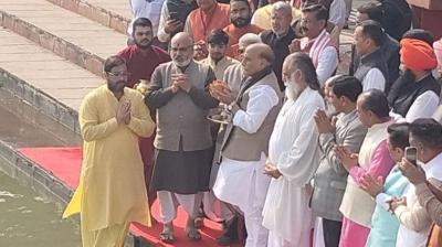 अंतरराष्ट्रीय गीता महोत्सव के पावन अवसर पर केंद्रीय रक्षा मंत्री राजनाथ सिंह ने सोमवार को कुरुक्षेत्र पहुंचे। यहां उन्होंने पवित्र ब्रह्म सरोवर पर तीर्थ पूजन किया। मंत्रोच्चारण और शंखनाद के...