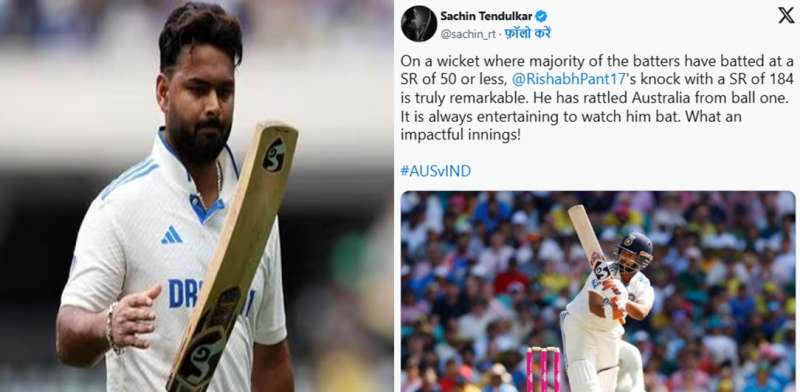 ऋषभ पंत की तूफानी पारी के बाद सचिन तेंदुलकर भी खुद को भारतीय विकेटकीपर की तारीफ करने से रोक नहीं पाए. सचिन ने एक्स पोस्ट पर पंत के लिए लिखा, ‘ऐसे विकेट पर जहां अधिकांश बल्लेबाजों ने 50 या उससे कम के स्ट्राइक रेट पर बल्लेबाजी की है वहां ऋषभ पंत की 184 के स्ट्राइक रेट के साथ की पारी वास्तव में उल्लेखनीय है. उन्होंने ऑस्ट्रेलिया को पहली गेंद से ही परेशान किया है. उन्हें बल्लेबाजी करते देखना हमेशा एंटरटेनिंग होता है. क्या प्रभावशाली पारी है’.