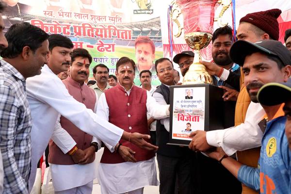 भोपाल : उप मुख्यमंत्री राजेन्द्र शुक्ल ने कहा है कि मेहनत एवं ईमानदारी से किये गये कार्य का सकारात्मक परिणाम मिलता है। उन्होंने पूज्य पिता जी की स्मृति में आयोजित किये जा रहे टूर्नामेंट के आयोजकों बधाई दी। उप मुख्यमंत्री शुक्ल ने कहा कि पूर्वजों की स्मृति आने वाली पीढ़ी का मार्ग प्रशस्त करती है। उप मुख्यमंत्री ने अपने गृह ग्राम ढ़ेरा में स्व. भैयालाल शुक्ल स्मृति क्रिकेट टूर्नामेंट की विजेता व उप विजेता टीम को नगद पुरस्कार व ट्राफी प्रदान की।