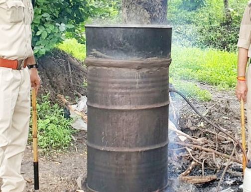 आबकारी टीम का एक्शन मोड जारी:दबिश देकर पकड़ी गई हाथभट्टी शराब नष्ट करवाई