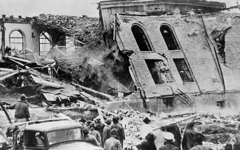 मेन बिल्डिंग में लगभग 500 छात्र और 40 शिक्षक थे। अचानक एक टीचर लेम्मी आर. बटलर ने एक इलेक्ट्रिक सैंडर ऑन कर दिया। इस दौरान सैंडर के स्विच से एक चिंगारी निकली, जिससे बेसमेंट में भरी गैस में आग भड़क गई थी। इससे भयानक विस्फोट हुआ, जिसने स्कूल की बिल्डिंग को ध्वस्त कर दिया। छत बिल्डिंग से ऊपर उठ गई और धड़ाम से नीचे आ गिरी। स्कूल की दीवारें गिरने लगीं। ईंट-कांच और लकड़ी के बीम हवा में उड़ने लगे। कुछ ही मिनटों में सबकुछ तहस नहस हो गया।