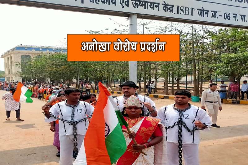 छत्तीसगढ़ में बी.एड शिक्षकों का अनोखा प्रदर्शन, कुछ लोग भारत माता-भगत सिंह, तो कुछ राजगुरु-सुखदेव बनकर निकले
