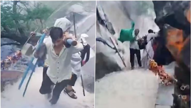 अहमदाबाद: प्रकृति का आनंद कब सजा बन जाए, कहा नहीं जा सकता। और फिर दोष प्रशासन पर डालना आम हो जाता है। गुजरात के जूनागढ़ जिले से एक चेतावनी भरा सतर्क कर देने वाला वीडियो सामने आया है। भारी बारिश के बीच गिरनार पर्वत से पानी के तेज बहाव में काफी लोग फंस गए। लोगों से एक दूसरे को सहारा देकर किसी तरह से जान बचाई तो वहीं कुल लोगों ने वहां पर सूखे पेड़ की टहनी को पुल बनाकर बारिश के पानी के सैलाब को पार किया। अगर आप भी मानसून के मौसम में गिरनार जाने का मूड बना रहे हैं तो वहां सुंदरता का आनंद लेने के साथ सावधानी बरतें, क्योंकि बारिश के पानी के बहाव में फंसने के दौरान कोई भी चूक जानलेवा हो सकती है।