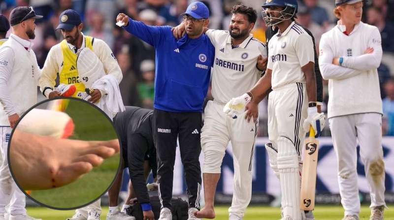 पहली पारी में पंत 37 रन बनाकर बल्लेबाजी कर रहे थे, जब रिवर्स स्वीप के प्रयास में गेंद आकर उनके पैर पर लगी। भारतीय पारी के 68वें ओवर में क्रिस वोक्स की गेंद उनके दाहिने पैर पर लगी। इसके बाद वह जमीन पर ही लेट गए और काफी दर्द में दिखे थे। फीजियो के आने पर भी वह दर्द से कराहते दिखे थे। फिर उन्हें उठाकर ले जाने की कोशिश की गई, लेकिन वह चल नहीं सके। फिर उन्हें एंबुलेंस में ले जाया गया। पंत के दाहिने पैर से खून रिसता हुआ देखा गया, साथ ही शरीर के उस हिस्से में काफी सूजन भी थी।