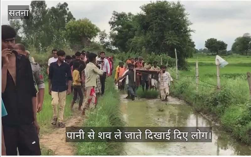 सतना में बदहाल व्यवस्था: कीचड़ से होकर शव को खाट पर ले जाना पड़ा पीएम के लिए