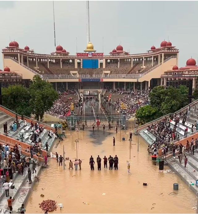 बारिश से डूबा पाकिस्तान का परेड ग्राउंड, वाघा बॉर्डर से सामने आया पानी-पानी नजारा, आरोपों के निशाने पर भारत
