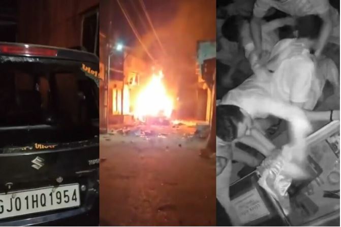 यह घटना गुरुवार देर रात गांधीनगर जिले के दहेगाम के बहियाल गांव में हुई। सोशल मीडिया स्टेटस को लेकर शुरू हुआ विवाद गरबा समारोह के दौरान तेजी से बढ़ गया। इसके परिणामस्वरूप पथराव और भगदड़ मच गई। आठ से ज्यादा गाड़ियों को नुकसान पहुंचाया गया और एक दुकान में तोड़फोड़ कर आग लगा दी गई। स्थिति को नियंत्रण में लाने की कोशिश कर रहे पुलिस पर भी हमला किया गया और हिंसा में उनके दो वाहन क्षतिग्रस्त हो गए।