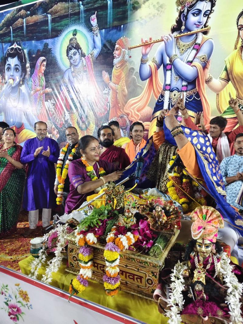 नालासोपारा (पालघर): नालासोपारा की पावन धरा पर विश्व हिंदू महासंघ एवं संकल्प प्रतिष्ठान मित्र मंडल द्वारा आयोजित 'शिवभक्ति अर्द्धनारीश्वर मानव कल्याण महायज्ञ' और श्रीमद्भागवत कथा अपने पूरे यौवन पर है। कथा के वर्तमान सत्रों में भगवान के दिव्य प्रसंगों और भव्य झांकियों ने श्रद्धालुओं को मंत्रमुग्ध कर दिया है।