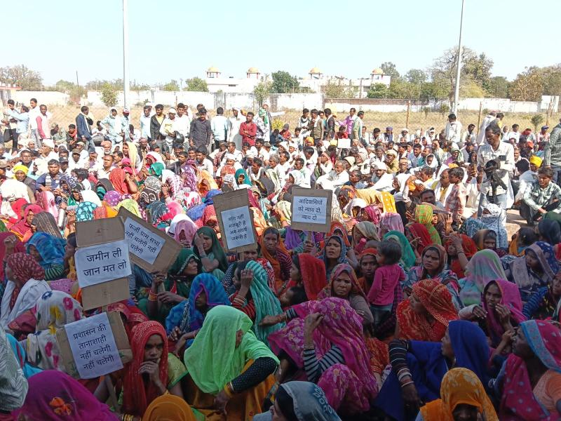 विस्थापन और मुआवजे की मांग पर किसानों-आदिवासियों का धरना