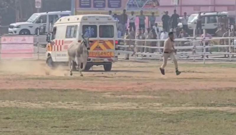 सीएम नीतिश के आगमन के पहले हेलीपैड के अंदर घुस गया सांड..........फिर हुआ क्या