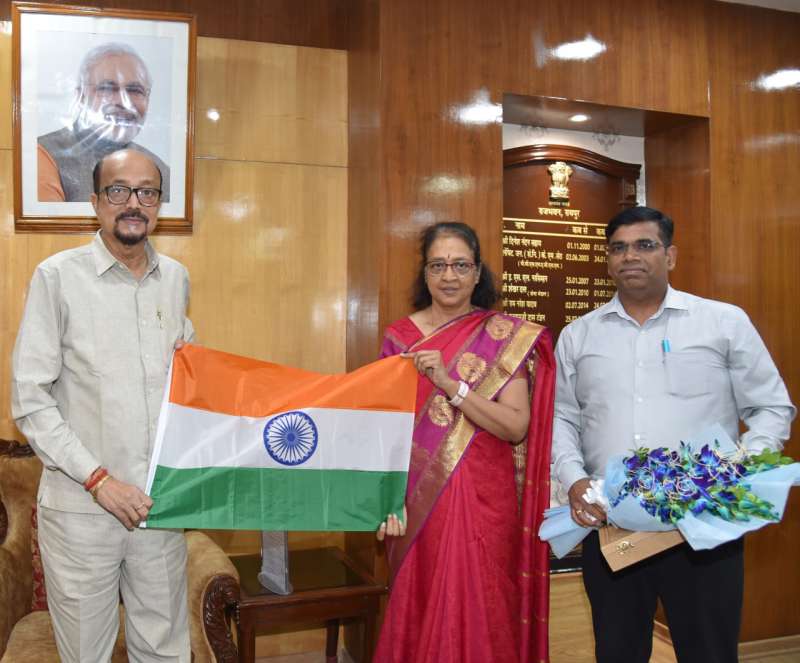 रायपुर : राज्यपाल रमेन डेका से आज राजभवन में छत्तीसगढ़ मुख्य पोस्टमास्टर जनरल वीणा आर.श्रीनिवास एवं वरिष्ठ छत्तीसगढ़ डाक सेवाएं दिनेष कुमार मिस्त्री निदेषक ने सौजन्य मुलाकात की और तिरंगा भेंट किया।