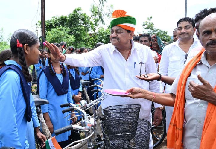 खाद्य मंत्री बघेल ने 88 छात्राओं को किया साइकिल वितरण