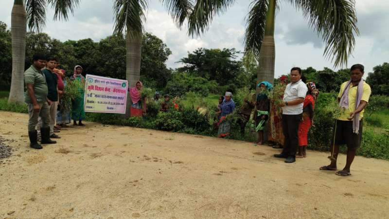 नारायणपुर : कृषि विज्ञान केन्द्र केरलापाल, नारायणपुर द्वारा गाजरघास उन्मुलन जागरूकता कार्यक्रम का आयोजन नारायणपुर के विभिन्न ग्रामों में किया जा राहा है, इस कार्यक्रम के मुख्य उद्देश्य यह है कि आम जनता एवं किसानो को गाजरघास के हानी कारक प्रभाव एवं उसके नियत्रण के बारे में जागरूक करना, कृषि विज्ञान केन्द्र के अधिकारीयों के द्वारा बताया गया कि गाजर घास जिसे आमतौर पर कांग्रेस घास, चटक चादनी के नाम से भी जाना जाता है। यह एक विदेशी घास है, यह विदेशी खरपतवार अधिकतर रोड के किनारे, घर के बाडी में बंजर भूमि सहित कई स्थानों में उगता है, जो कि मनुष्य के स्वास्थय के लिये हानिकारक है। यह त्वचा एवं श्वसन तत्र को जबरदस्त हानी पहुंचाता है। इस घास से एलर्जी इतनी हानी कारक होती है कि मनुष्य घातक रूप से अस्थमा से ग्रस्त हो सकती है। गाजर घास मनुष्य के साथ-साथ पशुओं के लिये भी हानी कारक है। इसको नष्ट करने का उपाय यह है कि इस खरपतवार को फूलने से पहले ही उखाड़ कर जला देना चाहिए ताकि इसके बीज न बन पाए व न ही फैल पाए। जैविक उपाय जिसमे खरपतवार को छोटे अवस्था में 15 प्रतिशत नमक का घोल बना कर छिड़काव करना एवं अधिक मात्रा में फैल जाने पर खाली खेतों में मेढ़ पर ग्लाइफोसेट 41 फिसदी दवा का छिड़काव करने से इसका नियत्रंण किया जा सकता है। इस कार्यक्रम में कृषि विज्ञान केन्द्र के अधिकारी एवं कर्मचारी के साथ किसान भाग ले रहे हैं।