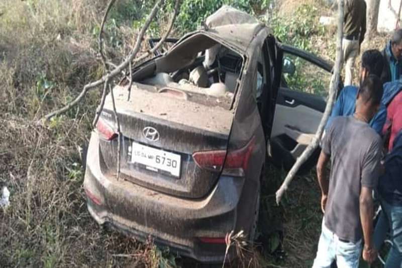 अनियंत्रित कार सड़क किनारे पलटी, दो युवक गंभीर रूप से घायल