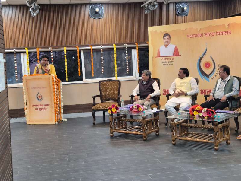 उन्होंने कहा किज्ञइसके लिए माननीय मुख्यमंत्री डॉ मोहन यादव जी और हमारे प्रमुख सचिव शेखर शुक्ला जी सहित पूरी टीम को बधाई देता हूं। हमारा प्रयास है कि हम मध्य प्रदेश नाट्य विद्यालय को राष्ट्रीय और अंतरराष्ट्रीय नाट्य विद्यालय की तर्ज पर विकसित करेंगे। संस्कृति विभाग के प्रमुख सचिव शेखर शुक्ला ने इस अवसर पर नाट्य विद्यालय के निदेशक टीकम जोशी की प्रशंसा करते हुए कहा कि उन्होंने कम समय में विद्यालय की तरक्की के लिए सार्थक प्रयास किए हैं। उन्होंने कहा कि हम जल्द ही इसे पीजी डिप्लोमा से पीजी डिग्री कोर्स में बदलने का प्रयास करेंगे। उन्होंने कहा कि हम इसे देश का सर्वश्रेष्ठ नाटक विद्यालय बनाने का प्रयास करेंगे। टीकम जोशी को इंगित करते हुए उन्होंने कहा कि हमें भारत भवन की रेपिटरी को भी पुनः स्थापित करना है। इससे पहले विद्यालय के निदेशक टीकम जोशी ने अतिथियों से आग्रह किया कि वे बच्चों को मोटिवेट करें कि उन्हें जो स्ट्रक्चर मिला है उसका सदुपयोग करें तथा प्रदेश के साथ- साथ यहां की कला और संस्कृति के प्रति अपने दायित्वों को पूरा करें ।उन्होंने कहा कि मंत्री जी की भावना के अनुरूप नाट्य विद्यालय को ऊंचाइयों पर ले जाने के लिए वह कोई कसर नहीं छोड़ेंगे। इस मौके पर संस्कृति संचालक एन.पी. नामदेव और वरिष्ठ कला समीक्षक गिरिजा शंकर ने भी कार्यक्रम को संबोधित किया। विद्यार्थियों ने पर रंग संगीत की आकर्षक प्रस्तुति दी। नाट्य विद्यालय में ऑडियो रूम ,ब्लैक बॉक्स थिएटर जैसी आधुनिक सुविधाएं उपलब्ध होंगी