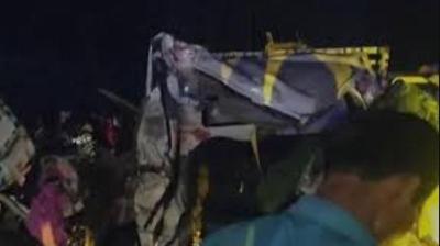 यात्रियों से भरी बस-ट्रक भिड़ंत, एक की मौत, कई घायल
