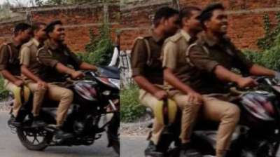 फरीदाबाद: बिना हेलमेट घूमते पुलिसकर्मी काट रहे थे चालान, तस्वीर वायरल